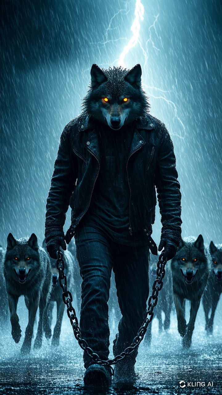 In a world where storms hide secrets older than time itself, one figure walks alone through torrential rain—a man clad in weathered leather jacket and jeans, his eyes burning like twin supernovas piercing through darkness. Behind him strides an eerie procession of wolves bound by shimmering chains, their own eyes glowing with unnatural light as they move in perfect unison through crashing waves of rainwater. Lightning fractures across skies that weep relentlessly while shadows twist like living things beneath their feet... This isn’t just a scene—it’s an invitation to unlock your imagination’s full potential with AI video creation magic you can master today.
